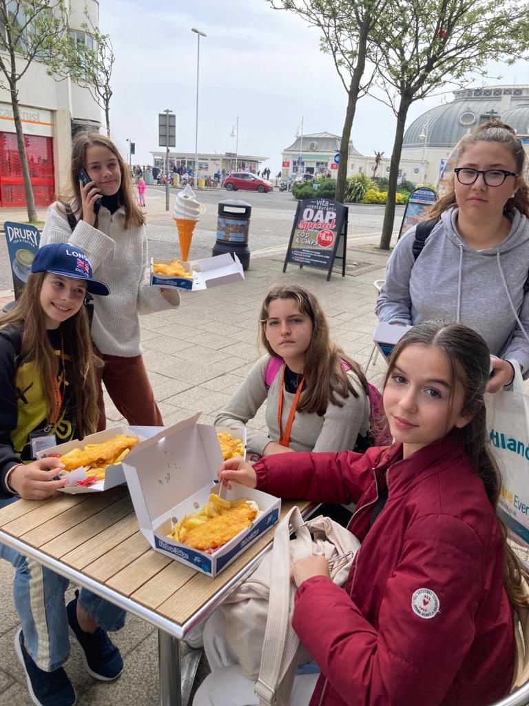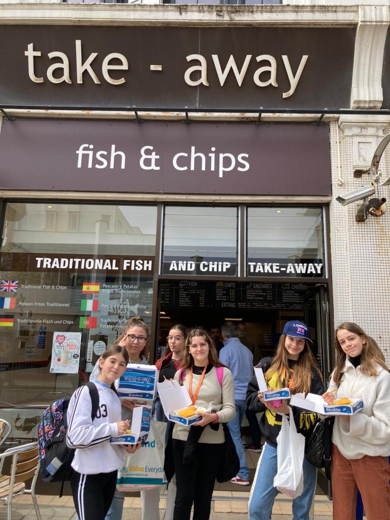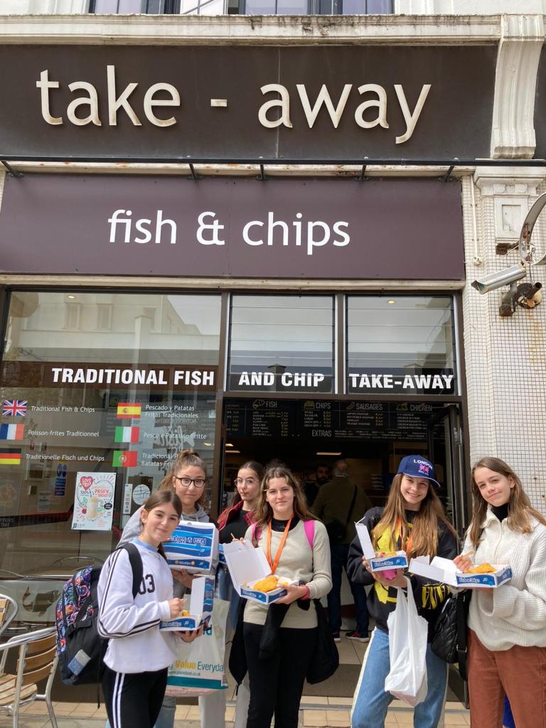 Hoy nos vamos, pero no podíamos despedirnos de Inglaterra sin probar un fish and chips, y es por eso que nuestro monitor nos ha llevado a probarlo. Otros, sin embargo, fuimos a gastar todo el dinero que nos quedaba, ¿para qué guardar nada? Ha sido una experiencia chulisima, eso sin duda.