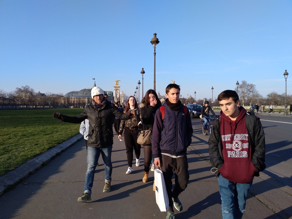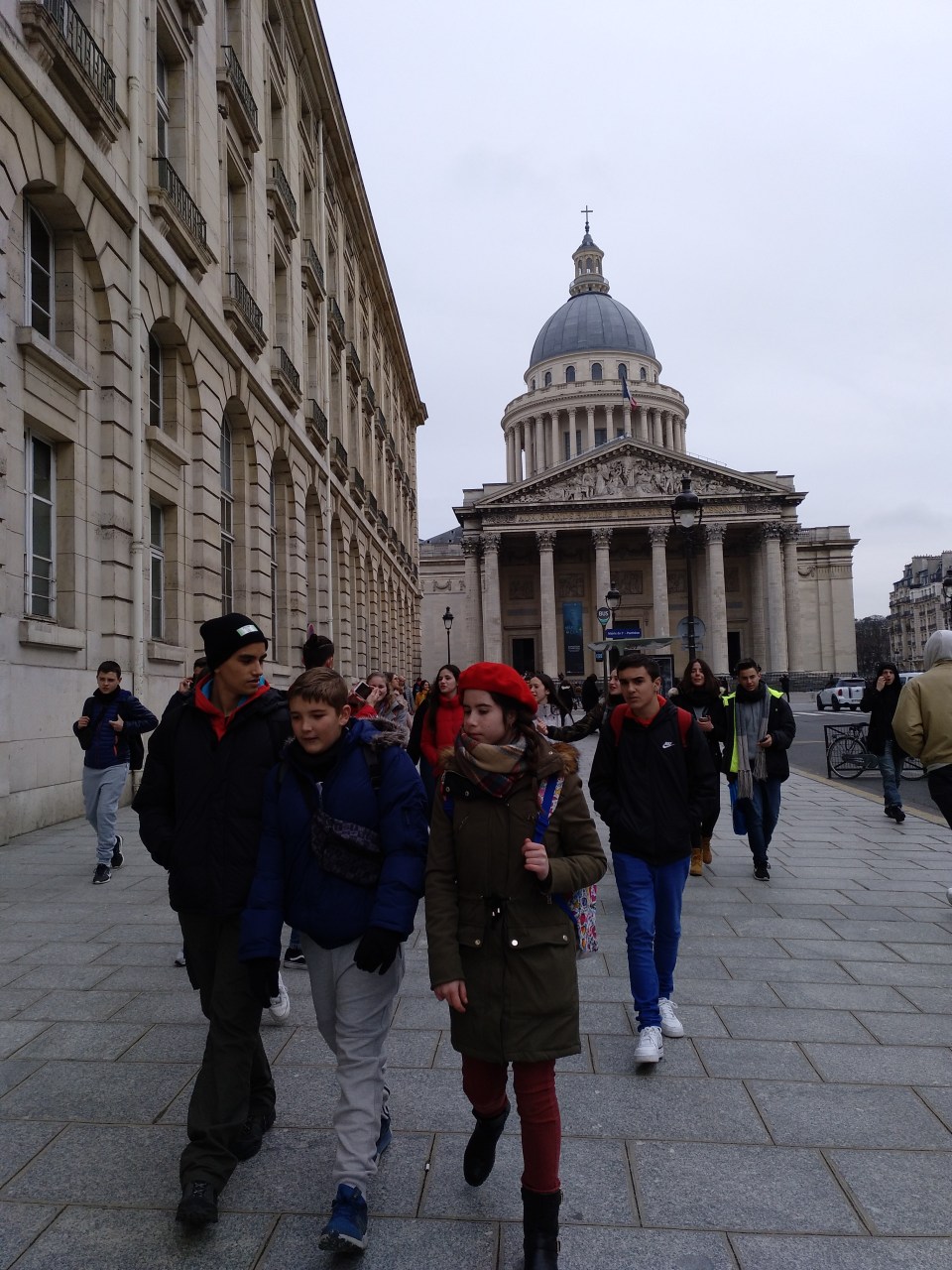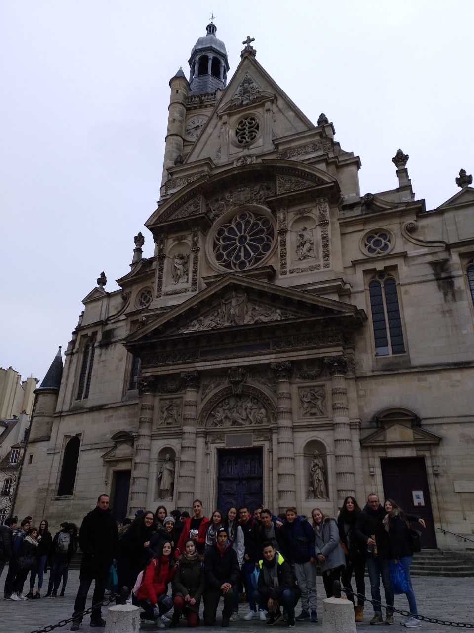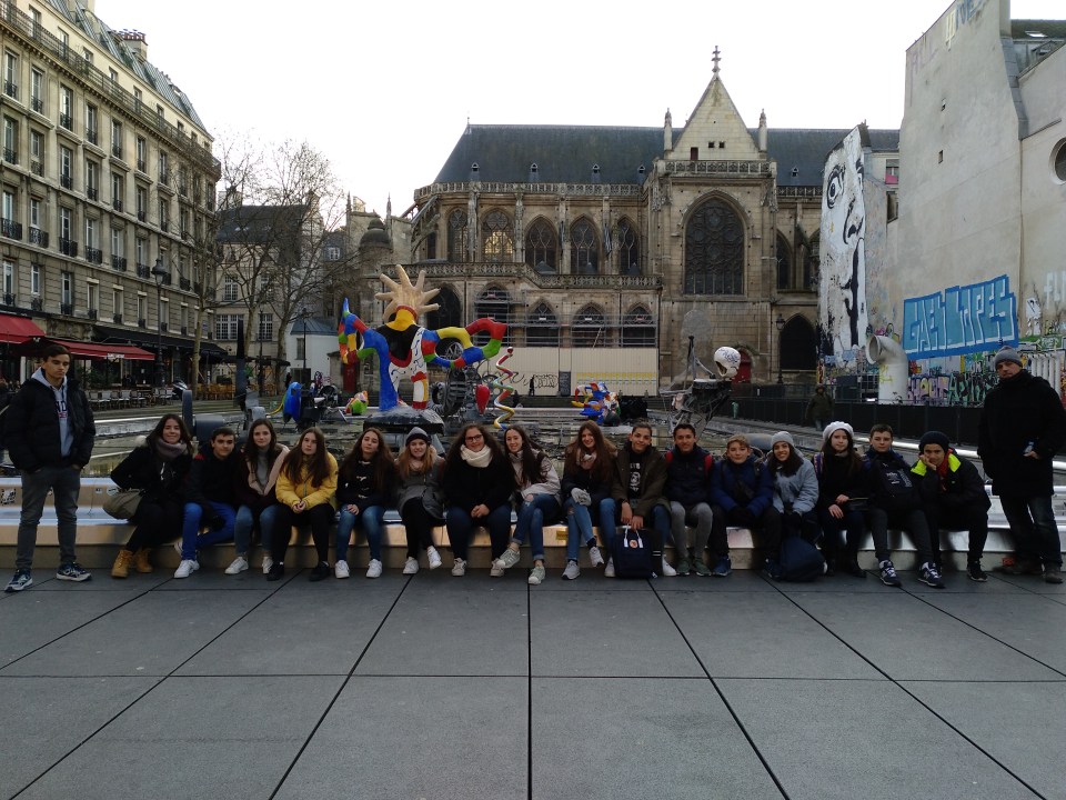 Los alumnos tuvieron clase de francés por la mañana, con Lysiane, la profesora. Sobre las 12:00, salimos de la escuela para ir a la estación de tren de Bretigny y hemos llegado en París al fin de la mañana. Primero fuimos a pasear en el bario Latino, que es el bario histórico de París donde se desarrollaron las primeras universidades y en el siglo XIII fue de los primeros centros de enseñanza del mundo. Hoy en día las grandes escuelas de Francia tales como «La Sorbonne» o «Polythecnique» siguen allí. Este bario ofrece para sus estudiantes, muchas pequeñitas calles antiguas con muchas tiendas y restaurantes baratos. Los alumnos aprovecharon para comprar algunos recuerdos y comer un crep, como es muy tradicional aquí.