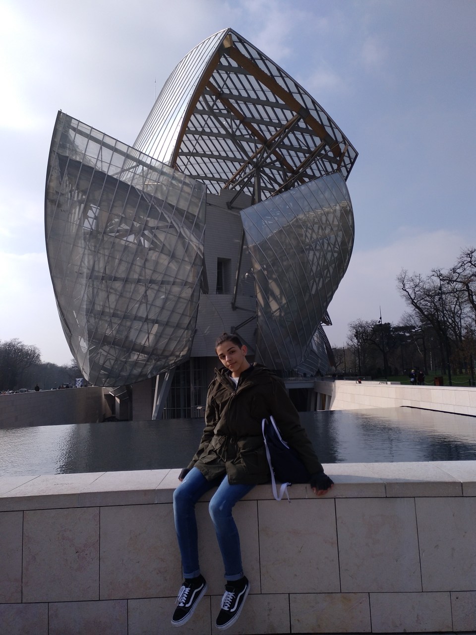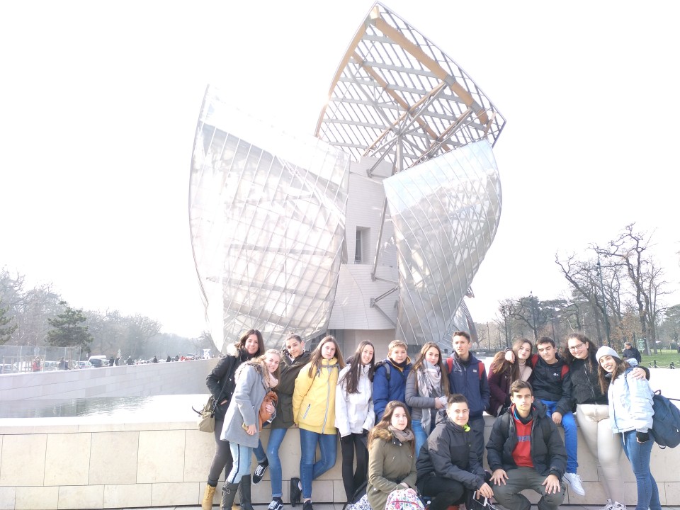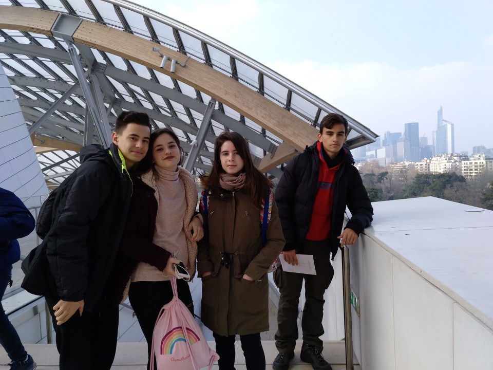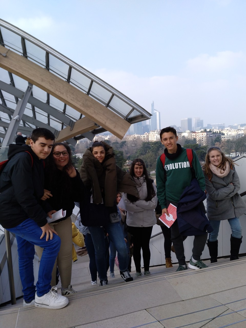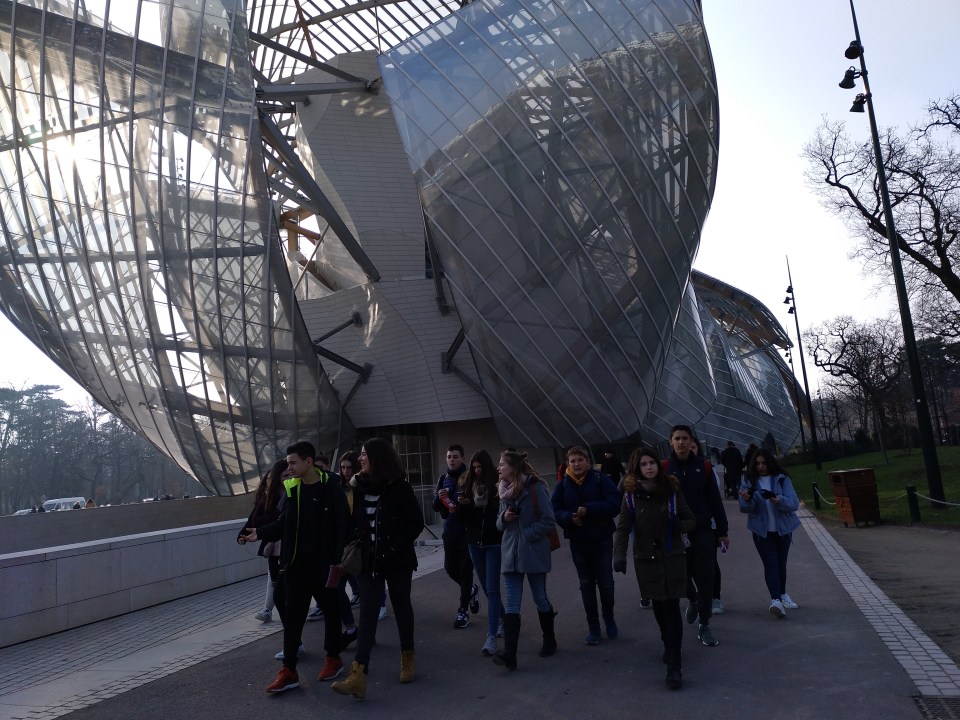 Tomamos el metro a la hora de comer hasta la fundación Luis Vuitton. Los alumnos se sorprendieron de descubrir un edificio grandísimo y ultra moderno con forma de un barco de vela y rodeado por agua. Constituye una obra de arte en sí mismo. El edificio realizado por el arquitecto Frank Gerry ubicado en medio del bosque «Boulogne» no tiene nada que ver con la tienda de Luis Vuitton de los campos Elíseos. Este es un museo de arquitectura y de arte moderno. Así se podía admirar obras de artistas muy conocidos tales como Andy Wharol o Picasso, entre muchos otros.