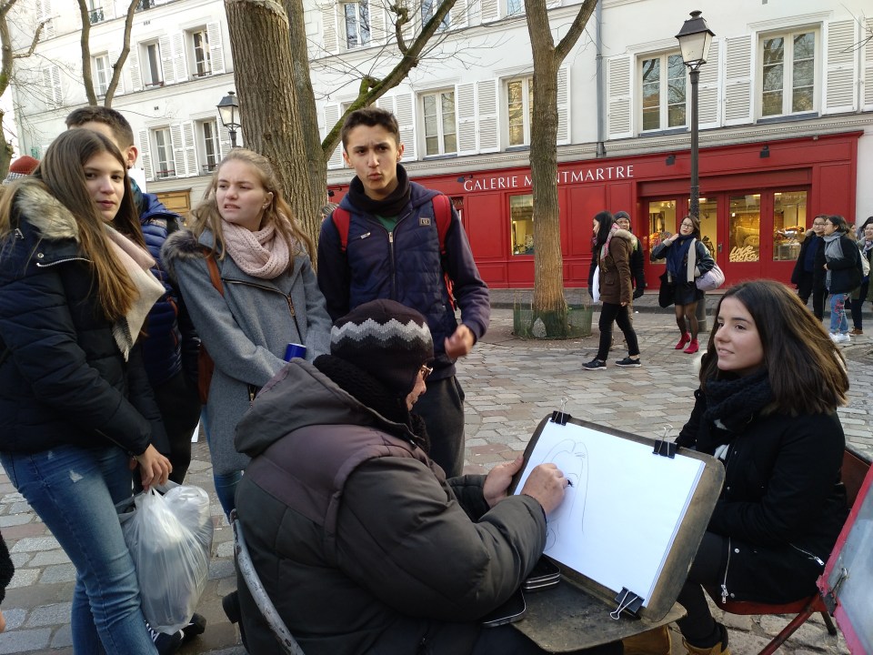 Fuimos después en Montmarte para admirar el magnífico Sagrado Corazón, y pasear en el bonito barrio. Los alumnos compraron unos recuerdos y miraron los pintores de la plaza de Montmartre. Unas alumnas incluso hicieron un retrato. Terminamos con una foto del mundialmente conocido «Moulin Rouge».