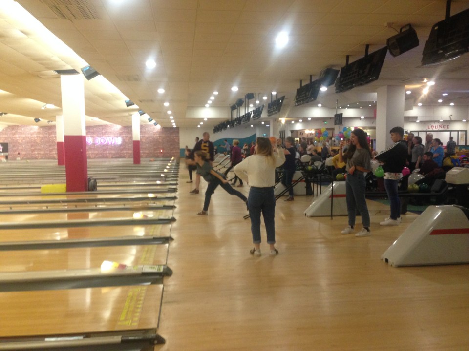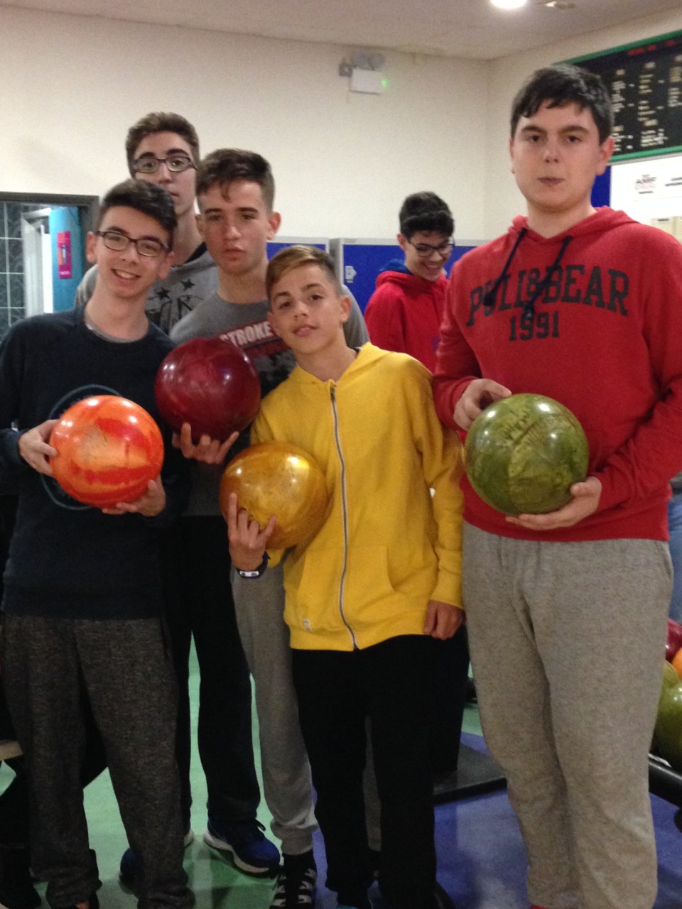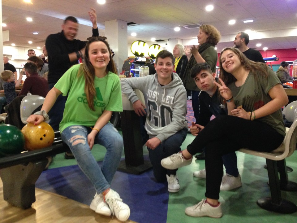 Tal y como estaba planificado nos vimos después de cenar en la escuela para ir a jugar a los bolos. ¡Todos lo pasaron muy bien!