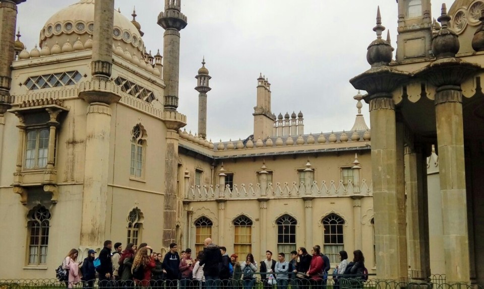 El segundo día de clase ha continuado con 4 horas de inglés por la mañana … ¡Seguro que los alumnos aprenden mucho! Al final de la clase nos apresuramos a coger el tren para ir a la famosa y singular ciudad de Brighton. Allí visitamos el increíble “royal pavillon” que sorprende por su estilo indio y chino que se impone de manera asombrosa en el centro de la ciudad.