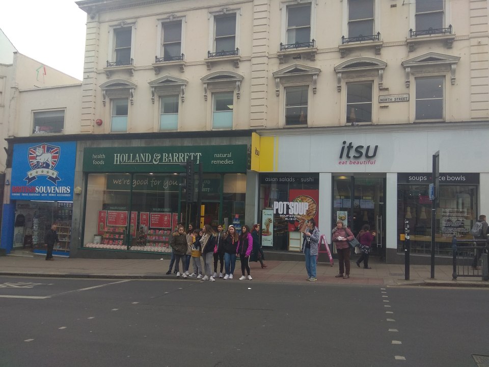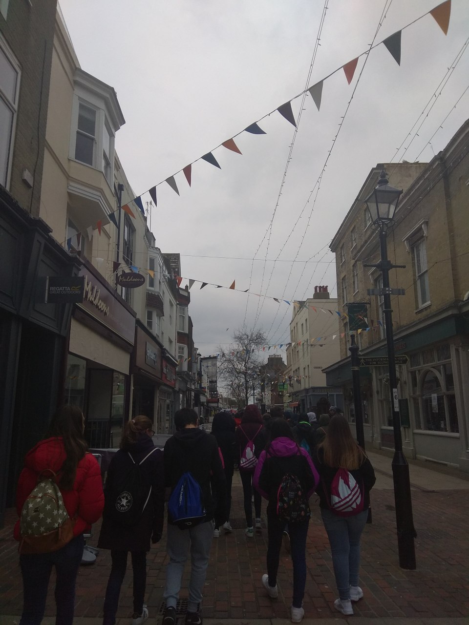Hoy ha sido un día algo más relajado. Nos hemos pasado la mañana en el centro de Worthing participando en una especie de trivial interactivo para que pudieramos hablar con la gente del pueblo. Tessa, nuestra guía, nos ha repartido chuches a todos cuando hemos terminado. Además, hoy ha hecho bastante buen día y era día de mercado, así que había muy buen ambiente. Después hemos vuelto al colegio para comer e ir a clase.