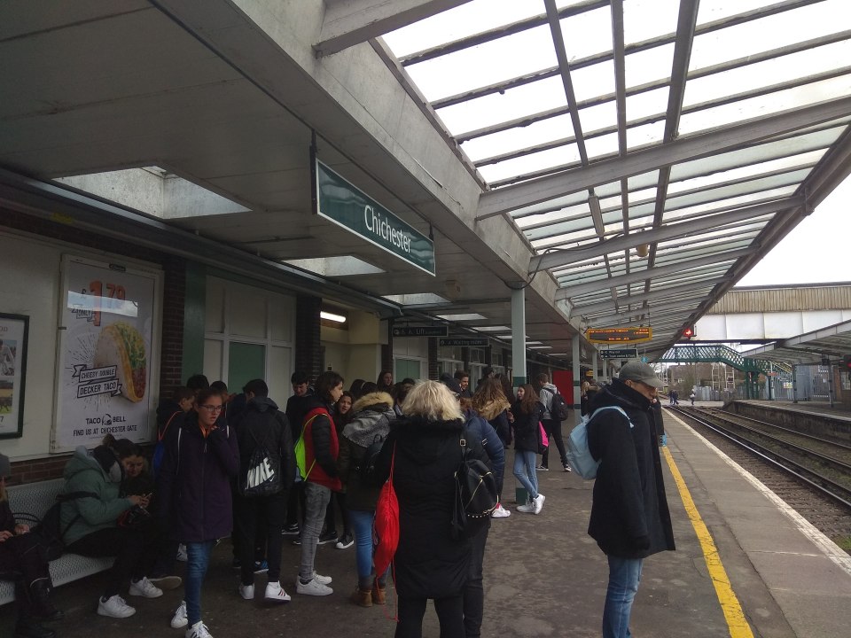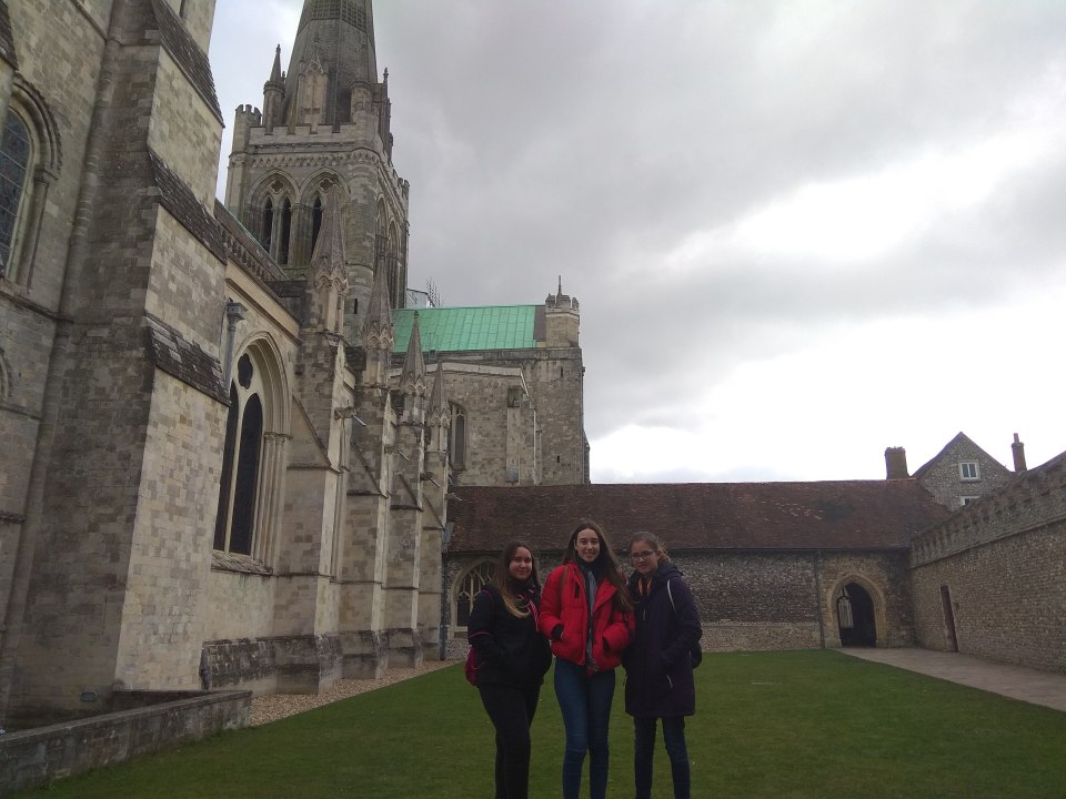 Hoy hemos ido a Chichester, un pueblecito que está a una media hora en tren desde Worthing y tiene una Catedral del siglo XIII. Además, hoy ha hecho bastante mejor tiempo que los dos primeros días. Deespués hemos vuelto al colegio para comer y para las clases de inglés.