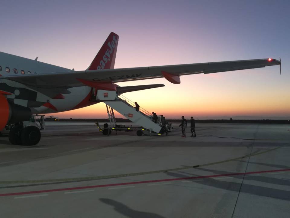¡Empieza nuestro viaje! Salimos de Lorca bien temprano para ir al nuevo aeropuerto de Murcia. Contra todo pronóstico las condiciones meteorológicas en buena parte de Europa hicieron imposible volar hoy a Londres. Aún así conseguimos disfrutar del día en Murcia donde estuvimos con nuestros profesores en el centro comercial Thader.