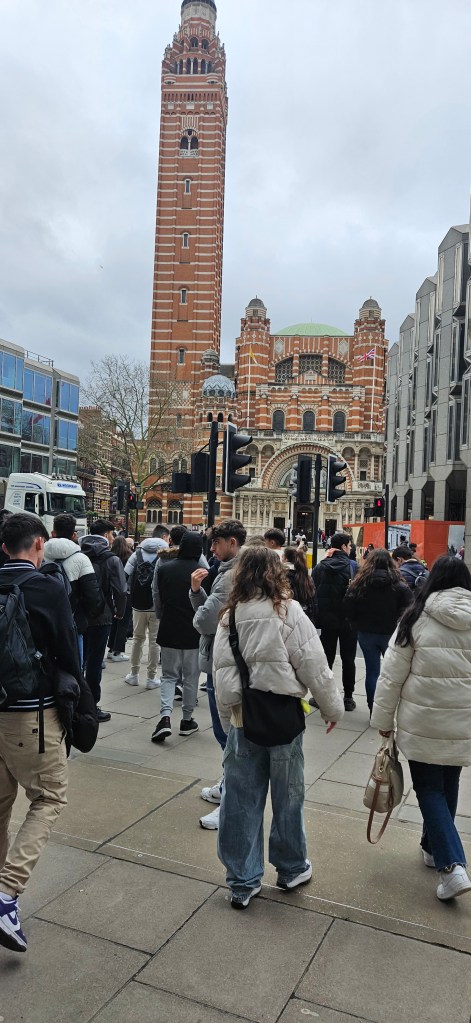 Hoy hemos comenzado el día quedando a las 8.30 a.m en la puerta de Tesco para dirigirnos hacia la estación de Wimbledon y desde allí coger el metro que nos llevaba a la parada de Westminster. Nada más llegar a Westminster, hemos recorrido el parque de St.James para dirigirnos hacia el palacio de Buckingham y ver el cambio de guardia. Después del cambio de guardia, hemos visto la estatua del Victoria Memorial. Después de ver la estatua, hemos parado a comer junto a la Catedral de Westminster. Finalmente, después de comer, hemos vuelto a coger el metro para dirigirnos a Wimbledon e ir a clase. Terminadas las clases a las 5, algunos alumnos han vuelto a casa para descansar y otros han decidido dar una vuelta por los alrededores del colegio o de la estación de Wimbledon hasta las 8 p.m. que es su hora límite de recogida. Después de un día sin parar, toca descansar ya que mañana visitamos Camden. ¡Buenas noches!