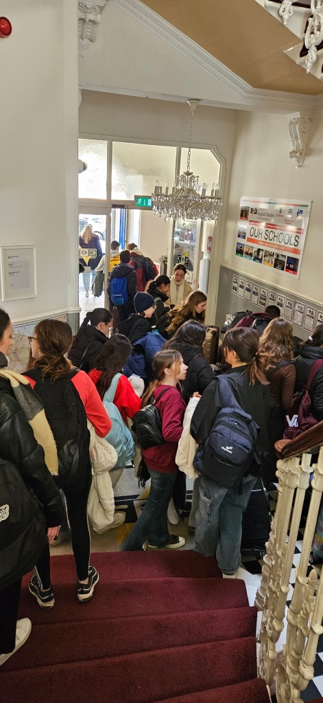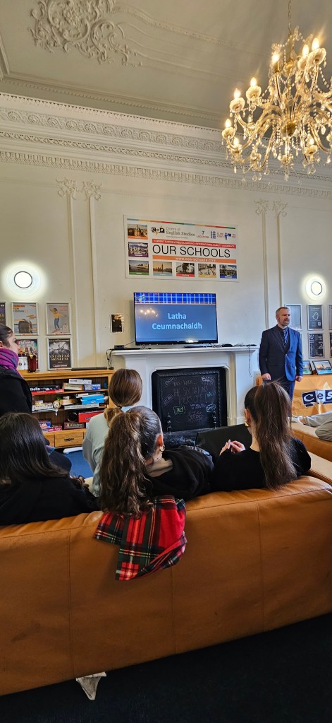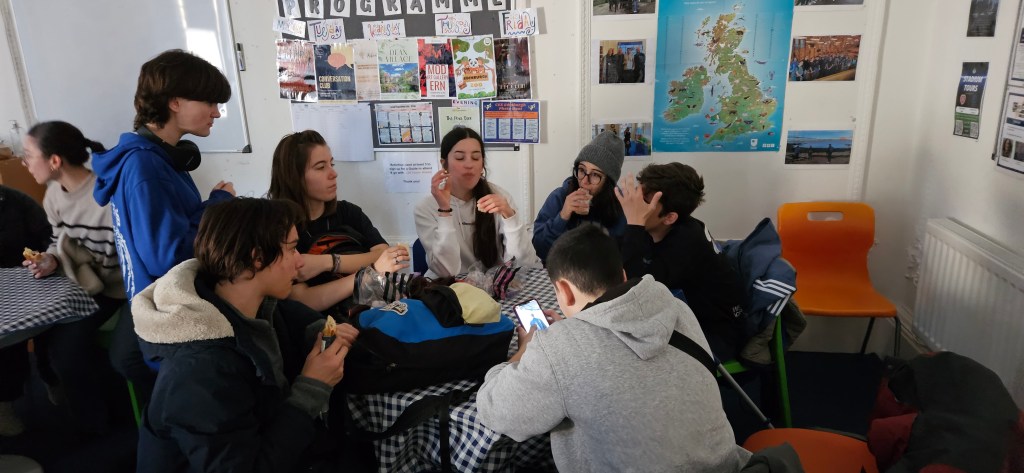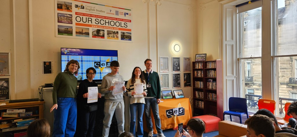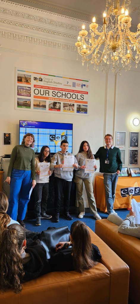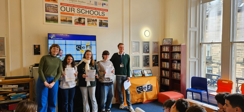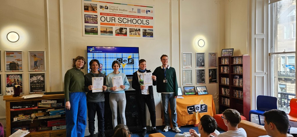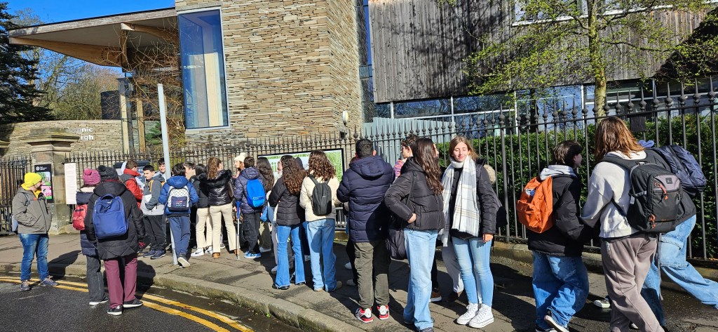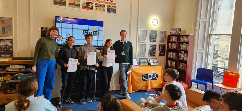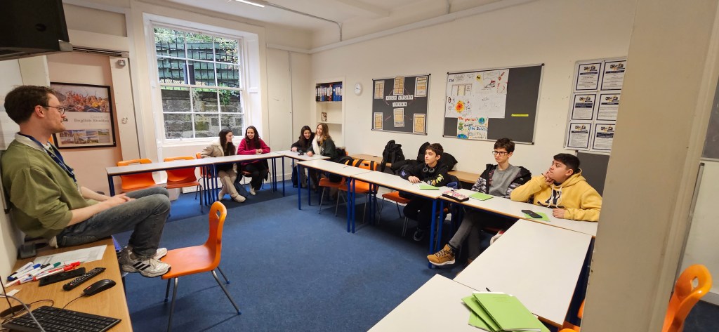 Hoy ha sido otro día bastante completo así como de mucho viento y con una fina lluvia cayendo. A pesar del tiempo adverso hemos completado nuestro planing con éxito. Así, a las 9.15 de la mañana los alumnos han empezado las clases y han terminado a las 12.30 de la mañana. Después, han tenido 1 hora para comer y descansar. A la 1.30 de la tarde hemos recorrido la ciudad hasta llegar al Museo Nacional de Escocia donde los alumnos han hecho una actividad en la cual tenían que buscar objetos y animales significativos dentro del museo y echarse una foto con ellos para mandarla luego por correo. Durante nuestra visita al museo hemos podido conocer mejor la historia de Escocia y de otras culturas del Mundo así como de arte, diseño y moda y sobre Ciencia y Tecnología además de sobre el mundo natural. A las 4 p.m. hemos terminado la visita al museo y los alumnos han tenido tiempo libre para dar una vuelta por la ciudad. Eso ha sido todo por hoy. ¡Buenas noches!