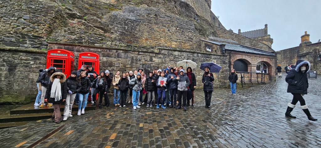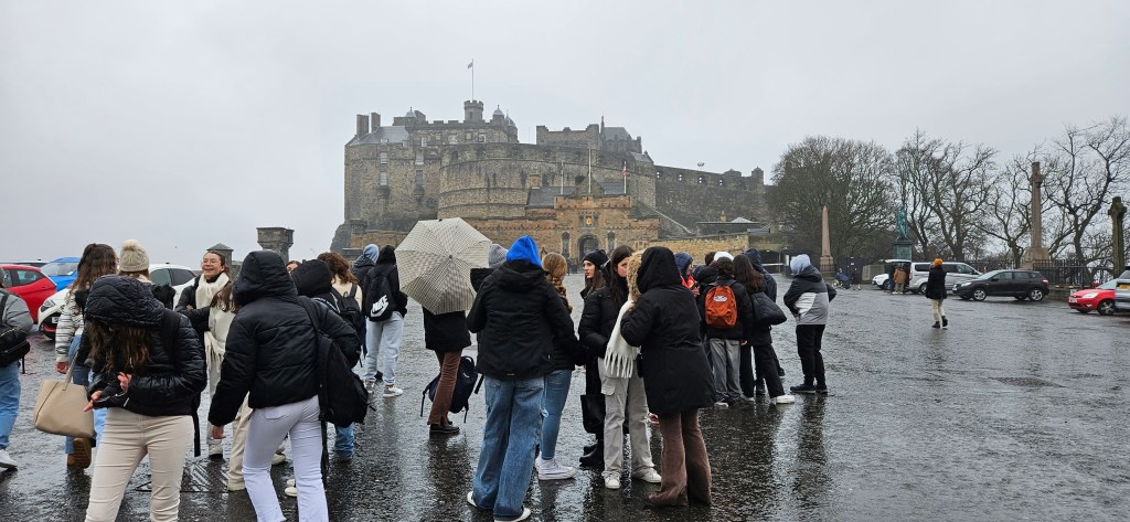 El día ha comenzado a las 9.15 a.m con clases muy dinámicas en las que los alumnos han podido descubrir más aspectos sobre la cultura inglesa. Después de las clases, nos hemos dirigido a hacer la visita al castillo de Edimburgo donde hemos podido conocer mejor la historia de los reyes de Escocia así como ver las joyas de la corona escocesa. Además, dentro del castillo hemos visitado el Memorial Nacional de la guerra de Escocia, Mons Meg, un cañón del siglo xv y el gran salón del siglo XVI. Después de nuestra visita los alumnos han tenido tiempo libre para ir de compras y dar una vuelta por la ciudad. Aunque ha sido un día pasado por agua, la visita al castillo ha merecido la pena. Mañana esperemos que no llueva. ¡Buenas noches!