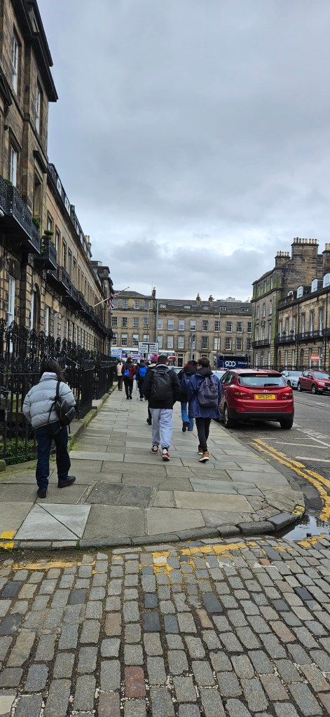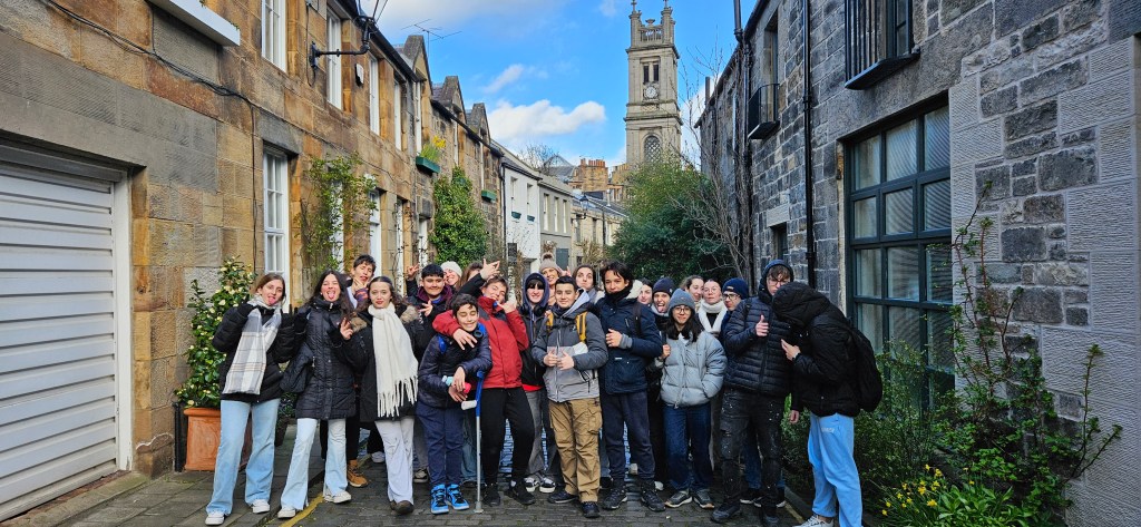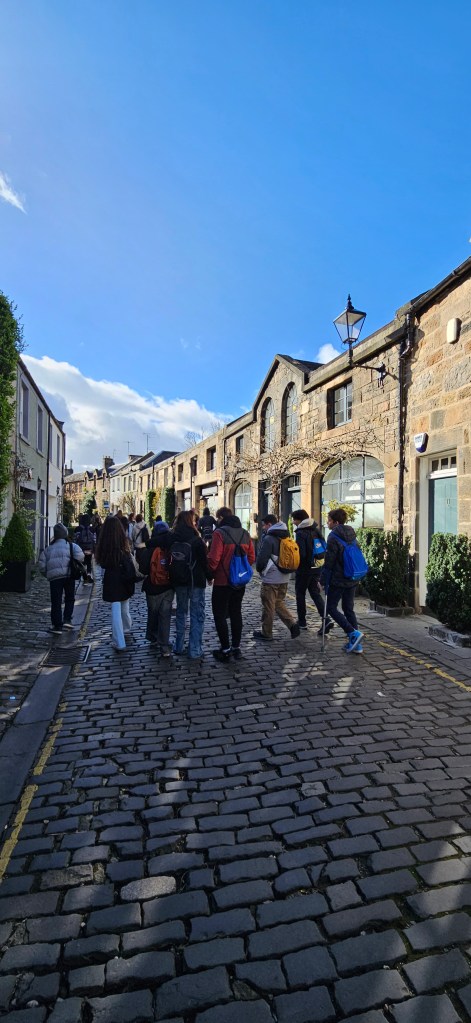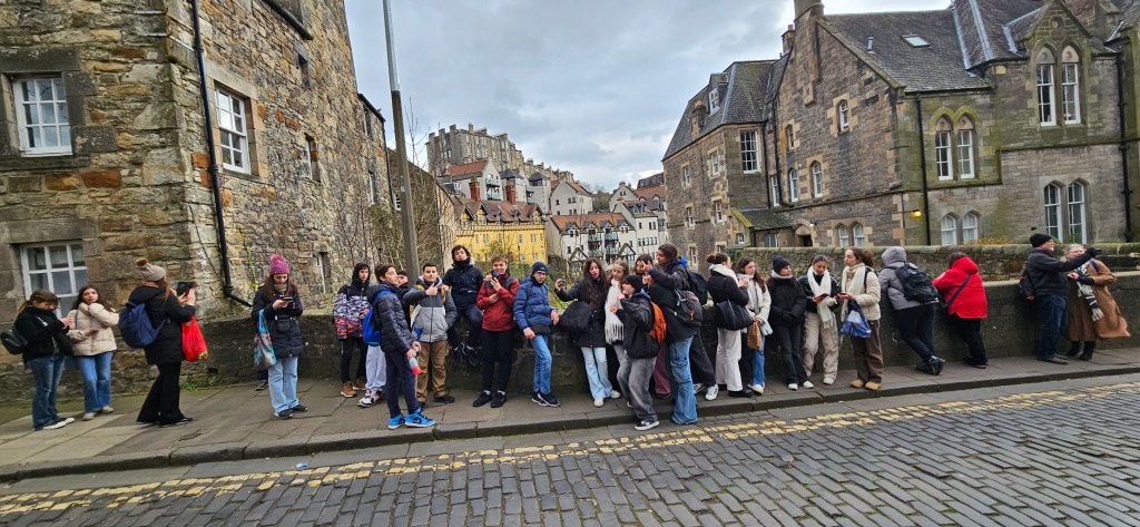 Hoy es sábado y los alumnos no tienen clase así que aprovechamos el día para hacer actividades lúdicas y algunas visitas a lugares pintorescos de la impresionante ciudad de Edimburgo. Por tanto, comenzamos el día a las 10 a.m quedando en el Monumento a Scot desde donde Hannah, nuestra monitora, explica a los alumnos que tienen que hacer una «Scavenger Hunt»(«Búsqueda del Tesoro») que consiste en que, divididos en equipos de 5, deben buscar elementos significativos de la ciudad de Edimburgo o de Escocia como,por ejemplo, una falda escocesa(kilt), una gaita(bagpipe), etc o lugares como el Castillo de Edimburgo y una vez encontrados, echarse una foto con los mismos y cuando encuentren todos los elementos y se echen la foto, mandar las fotos al correo del centro para ver quién ha sido el ganador. Esta actividad ocupó toda la mañana y tenían 3 horas para realizarla. Después, quedamos de nuevo con los estudiantes a la 1 p.m en el Monumento a Scot y los alumnos disponían de 1 hora para comer y descansar. Luego, a las 2 p.m comenzamos nuestra visita al barrio de Stockbridge. Allí paseamos por la calle empedrada de Circus Lane donde nos echamos unas fotos ya que era preciosa. Después, nos dirigimos hacia el puente que da nombre al barrio y por donde discurre el río Water of Leith y allí contemplamos las vistas del encantador pueblo conocido como Dean Village que se encuentra a tan sólo 15 minutos andando río arriba y que fué una comunidad molinera en la época medieval. En nuestro paseo hacia Dean Village, junto al río nos encontramos con St Bernard’s Well, un monumento del siglo XVIII y que es una fuente a cuya agua se le atribuían propiedades beneficiosas para la salud. A las 4 p.m terminamos nuestra visita a estos dos lugares y regresamos al centro de Edimburgo. A partir de esta hora, los alumn@s dispusieron de tiempo libre para ir de compras o hacer lo que quisieran. Eso ha sido todo por hoy. Hoy toca descansar, hacerse la maleta y coger fuerzas para mañana que es nuestro último día en esta impresionante ciudad. ¡Hasta mañana!