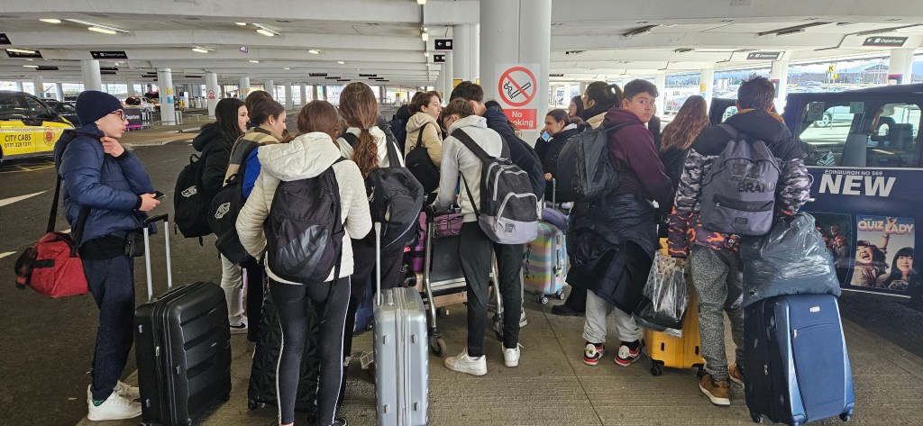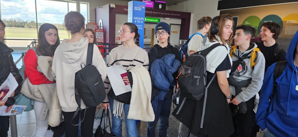 ¡Buenos días! Comenzamos nuestro día quedando a las 9 a.m en el centro para dejar las maletas ya que de las 10 a las 12.30 a.m tenemos tiempo libre para realizar las últimas compras y el último paseo o visita a la ciudad de Edimburgo. A las 10 a.m todos los alumnos han dejado su maleta y han decido almorzar algo antes de salir a dar una vuelta por la ciudad. Después, algunos estudiantes han decido hacer las últimas compras y otros han visitado la Galería Nacional de Escocia que sin duda merece la pena visitar. Después, a la 1 p.m nos hemos trasladado en taxi hasta el Aeropuerto de Edimburgo ya que teníamos que estar a las 2 p.m para hacer el check-in y el control puesto que nuestro vuelo salía a las 4 p.m. Después de pasar por todos los trámites del aeropuerto, hemos tenido tiempo de comer y descansar antes de coger nuestro vuelo. Después de 3 horas de avión hemos llegado al Aeropuerto de Alicante. Allí hemos recogido nuestras maletas y nos hemos dirigido hacia el anden número 15 donde nuestro amable conductor, Guillermo, nos estaba esperando para salir hacia Murcia. En el trayecto en bus nos ha llovido y hasta los cristales se han empañado pero hemos llegado al polideportivo de la Flota a las 9 p.m. A nuestra llegada, los estudiantes han recibido una cálida acogida por parte de su familiares y todos nos hemos ido a casa. Toca deshacer las maletas, cenar u descansar. Ha sido un viaje inolvidable en el que nos llevamos muchos recuerdos. Esperamos volver a visitarlo ¡Hasta pronto, Edimburgo!