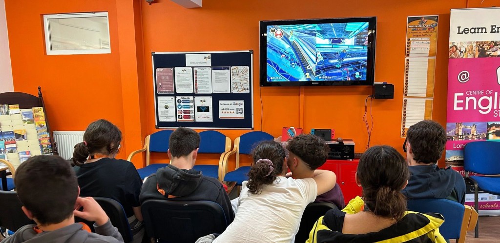 Simon, el director, les explica las normas principales y todo lo que necesitan saber para poder pasar una fantástica semana dentro y fuera de la escuela. Después de la pequeña charla, toca esperar a las familias y el colegio les proporciona todo tipo de juegos para que se entretengan: una Nintendo Switch y juegos de mesa formato gigante, jajaja.
