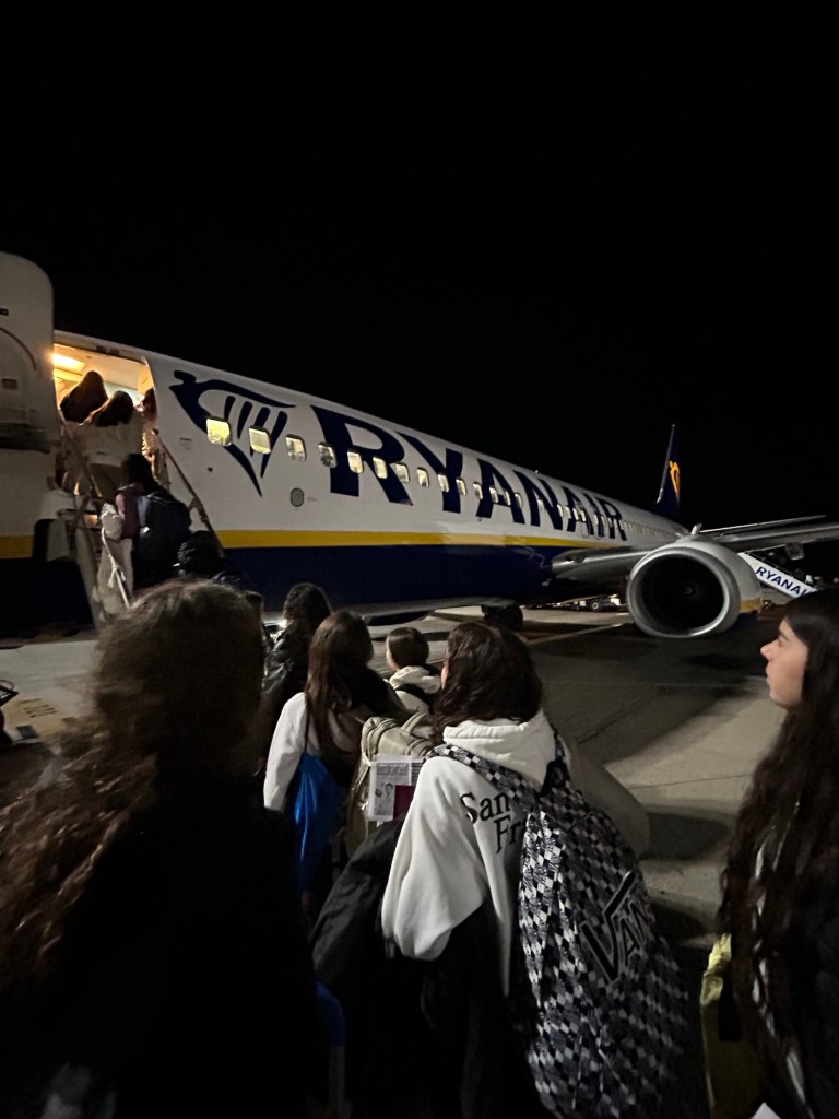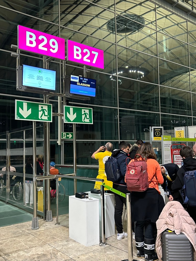 Después de pasar todos los controles, ya estamos en la puerta de embarque a la espera de subir al avión que nos lleva a Glasgow.