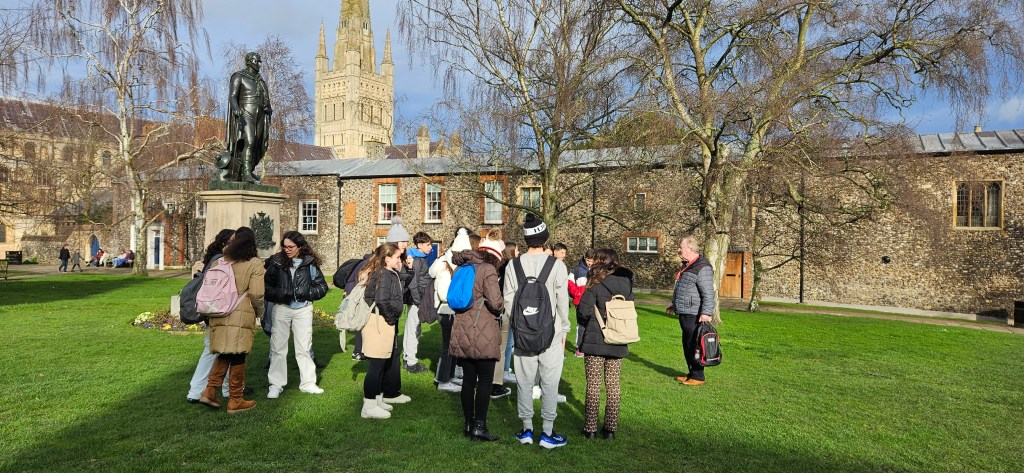 Después de las clases, de 14 a 17h los alumnos han realizado una actividad de Orientación por la ciudad de Norwich con Mark, nuestro «Activity Leader». Durante esta actividad han conocido datos curiosos sobre edificios como la catedral y el castillo así como el mercadillo de la ciudad con más de 900 años de antigüedad. Además, han podido pasear a orillas del río disfrutando de preciosos paisajes así como saber más sobre personajes relevantes de la ciudad e historias curiosas sobre edificios antiguos.