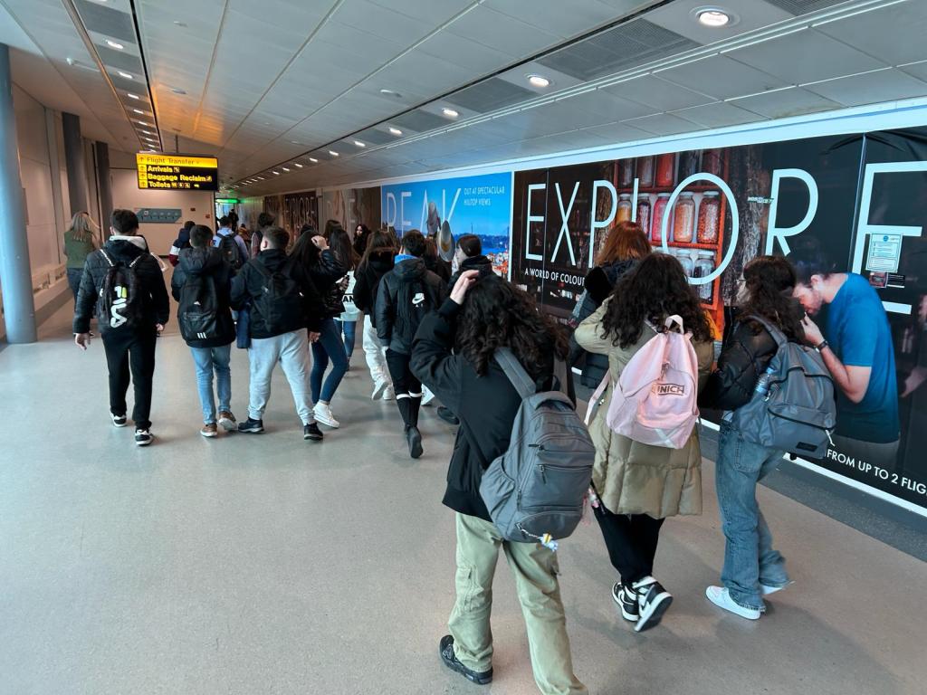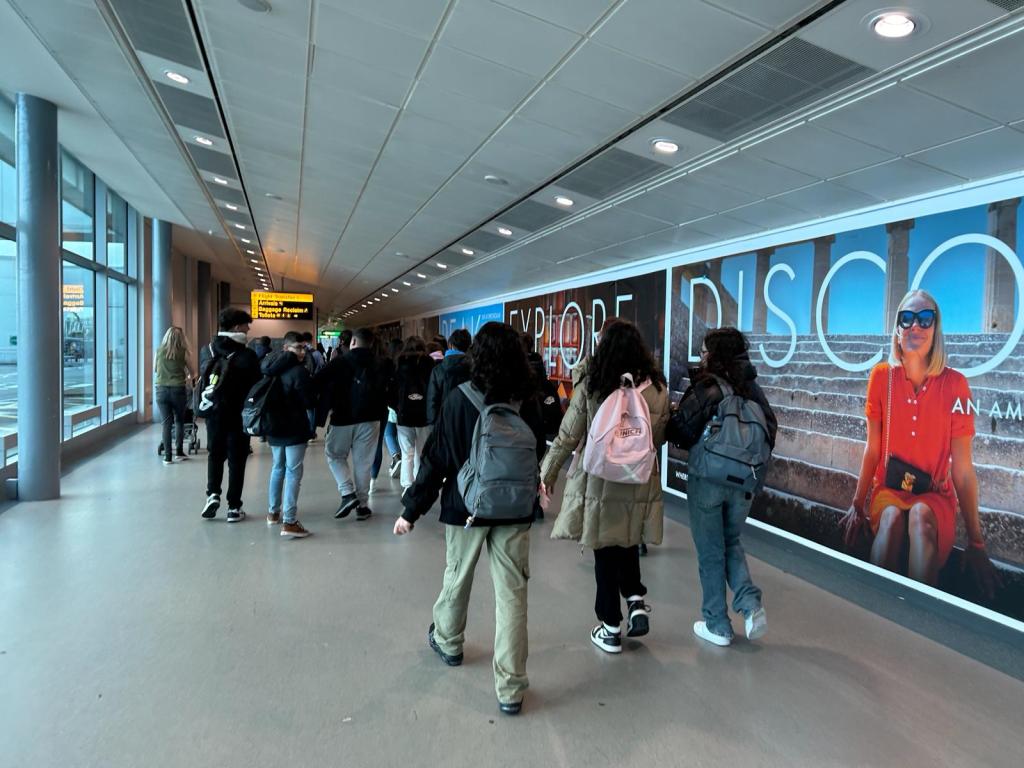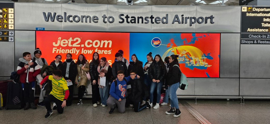 Llegada al Aeropuerto de Alicante para coger el vuelo al Aeropuerto de Stanted en Londres. Los alumnos están impacientes por conocer cómo serán sus familias.